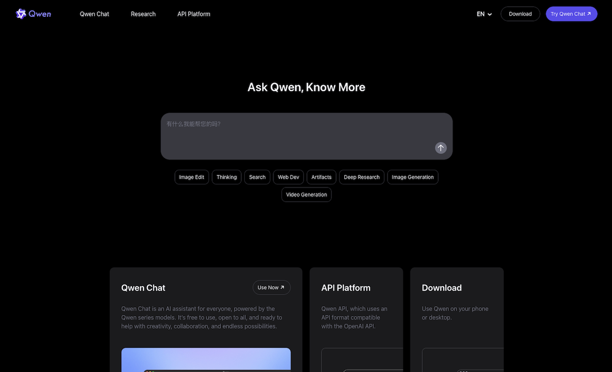 - Deep Research : Qwen intègre un mode Deep Research, conçu pour fournir des réponses plus détaillées et étayées, notamment dans le cadre de recherches complexes.