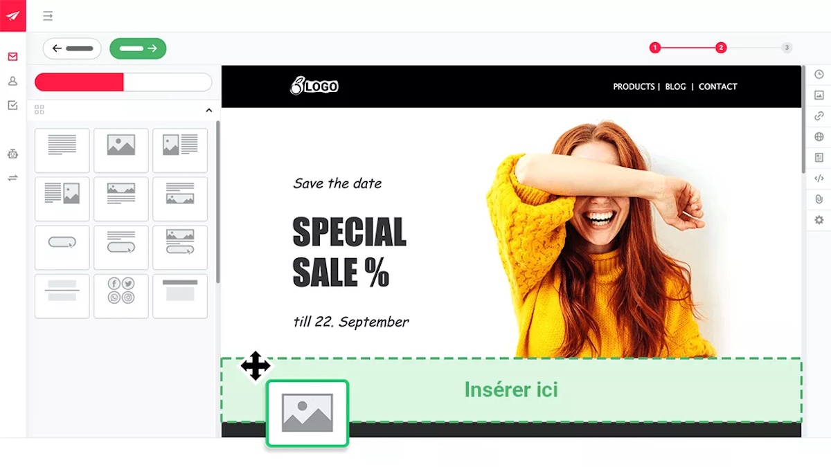 Le cœur de rapidmail est un éditeur glisser-déposer. Il suffit d’agencer les blocs de texte ou d’image pour composer une mise en page responsive adaptée aussi bien au mobile qu’au desktop.