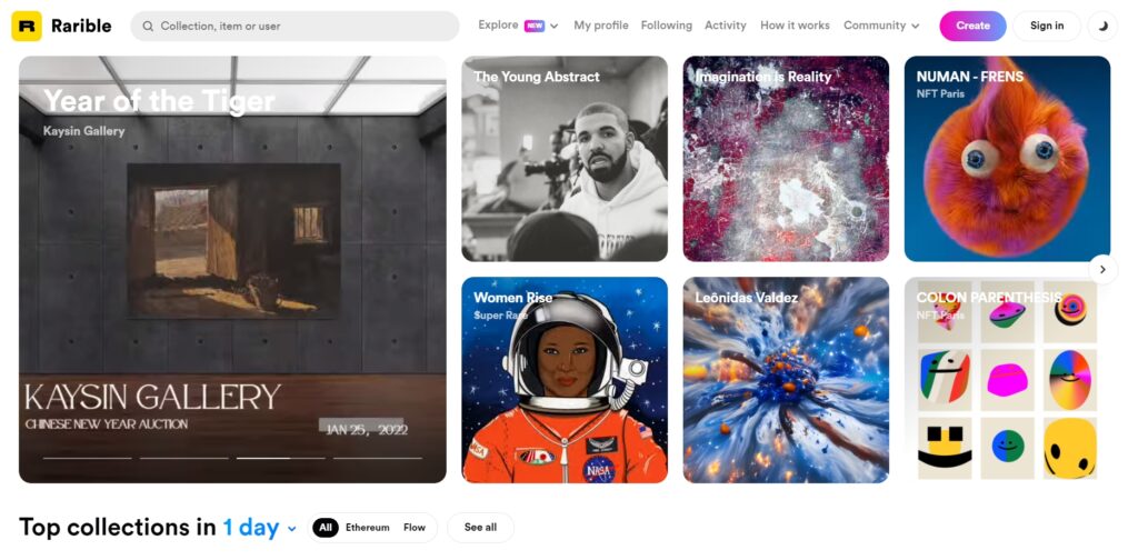 Rarible est une marketplace spécialement dédiée aux NFT (Non-Fungible Token), œuvres d’art numérique uniques auxquelles un certificat d’authenticité numérique a été attaché. La plateforme est dédiée à toutes les personnes qui s’intéressent aux NFT, et qui souhaitent créer leurs NFT sans compétences en codage, mais également vendre ou acheter des jetons numériques. Elle utilise la technologie blockchain Ethereum, et se concentre principalement sur les biens artistiques et les objets de collection virtuels.