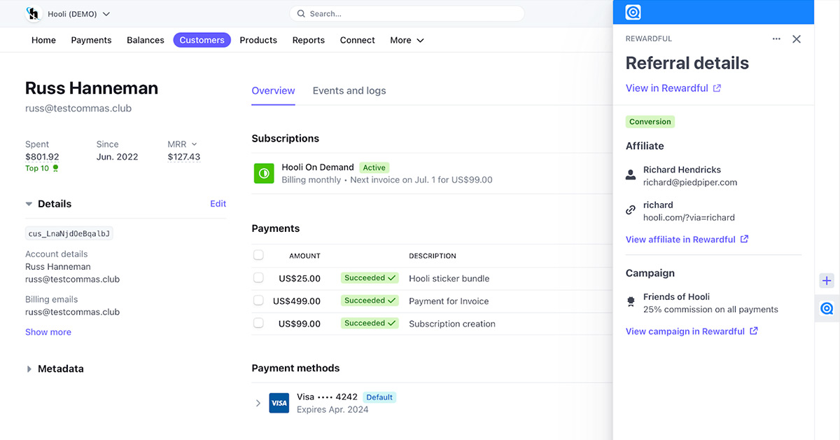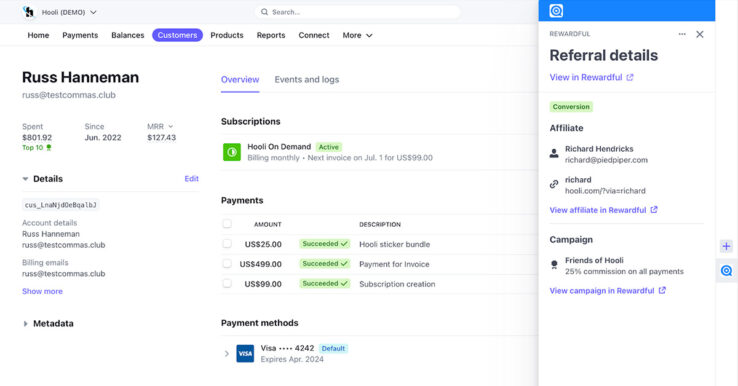 Les fonctionnalités majeures de Rewardful sont les suivantes :