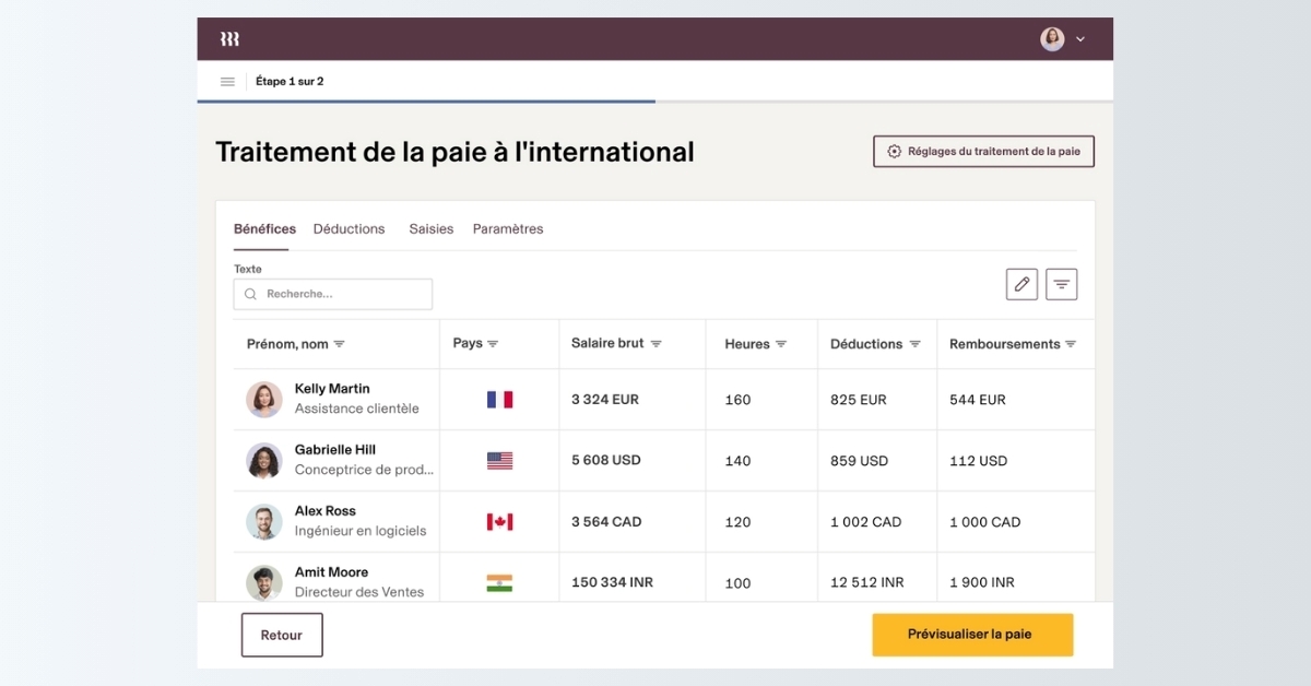- Gestion de la paie internationale : exécution de la paie pour vos collaborateurs dans plus de 185 pays, dans plus de 50 devises.