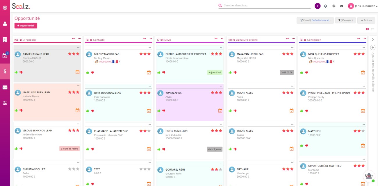 La prise en main de Saalz est simple et rapide. Son interface claire et efficace vous permet de visualiser et de gérer facilement toutes les opportunités commerciales en fonction de vos différents canaux de ventes. Vous les classez et les transformez en devis en quelques secondes ! Vous pouvez personnaliser la vue de votre pipeline de vente, tracker et organiser vos leads, filtrer et exporter rapidement toutes vos données.