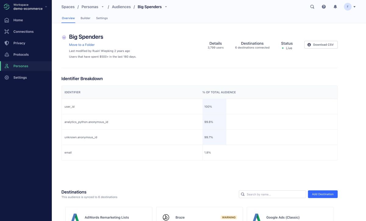 Segment est une CDP (Customer Data Plateform), qui permet de collecter, d’analyser et d’actionner des données clients. Cet outil s’adresse aux professionnels du marketing, aux équipes produits et aux ingénieurs, qui souhaitent s’appuyer sur de la data pour créer des parcours clients optimisés et rentables.