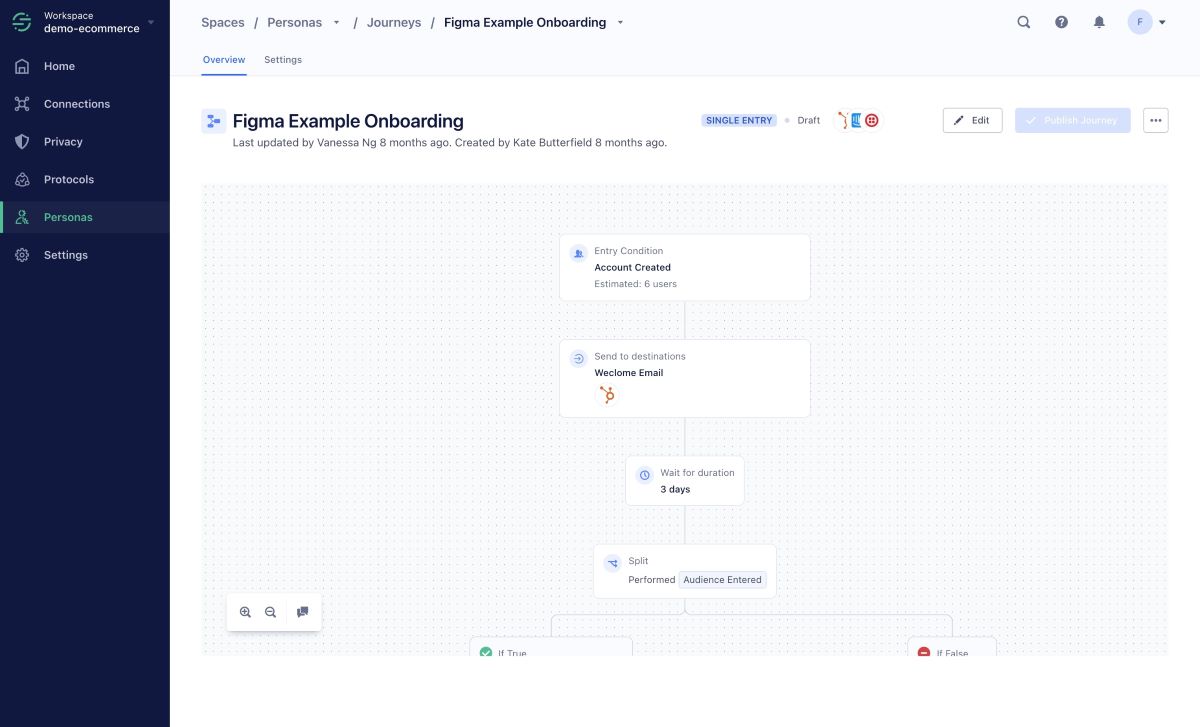 Segment propose de connecter et de centraliser l’ensemble de vos données clients, en intégrant la data issue de vos sources online (sites web, applications mobiles, publicités, etc.) et offline (magasins physiques, entrepôts, etc.). Ainsi, vous pouvez analyser tous les points de contact de vos clients. La plateforme vous permet également d’analyser le comportement de chaque utilisateur en temps réel (ouverture d’un email, produit ajouté au panier, accès à la page de paiement…) pour entrer en contact avec vos clients au bon moment, et ainsi optimiser le nombre d’expositions à vos messages, tout en augmentant les conversions.