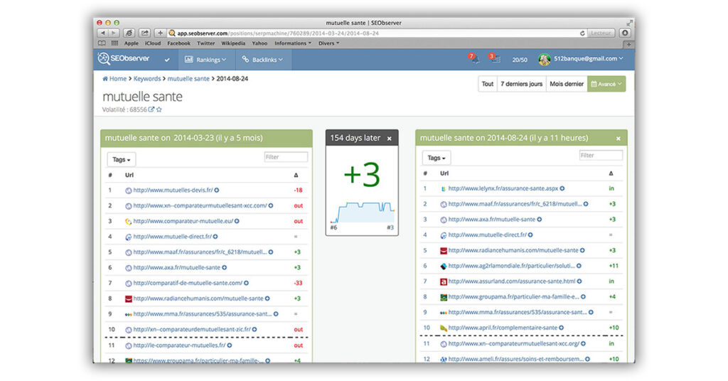 - Suivi de positionnement : SEObserver permet de suivre son positionnement dans la SERP et détecter les évolutions.