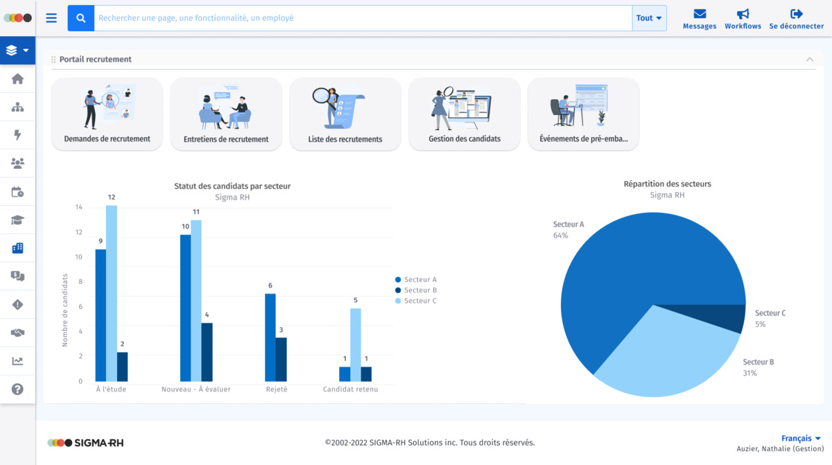 SIGMA-RH est un logiciel SaaS, dont la gestion du serveur, les opérations de maintenance et les mises à jour sont prises en charge. La solution est no-code, permettant une personnalisation simple des champs et une grande souplesse d’utilisation. L’outil est capable de gérer des structures complexes, comme de s’interfacer facilement à d’autres logiciels sans nécessiter de connaissances en développement.