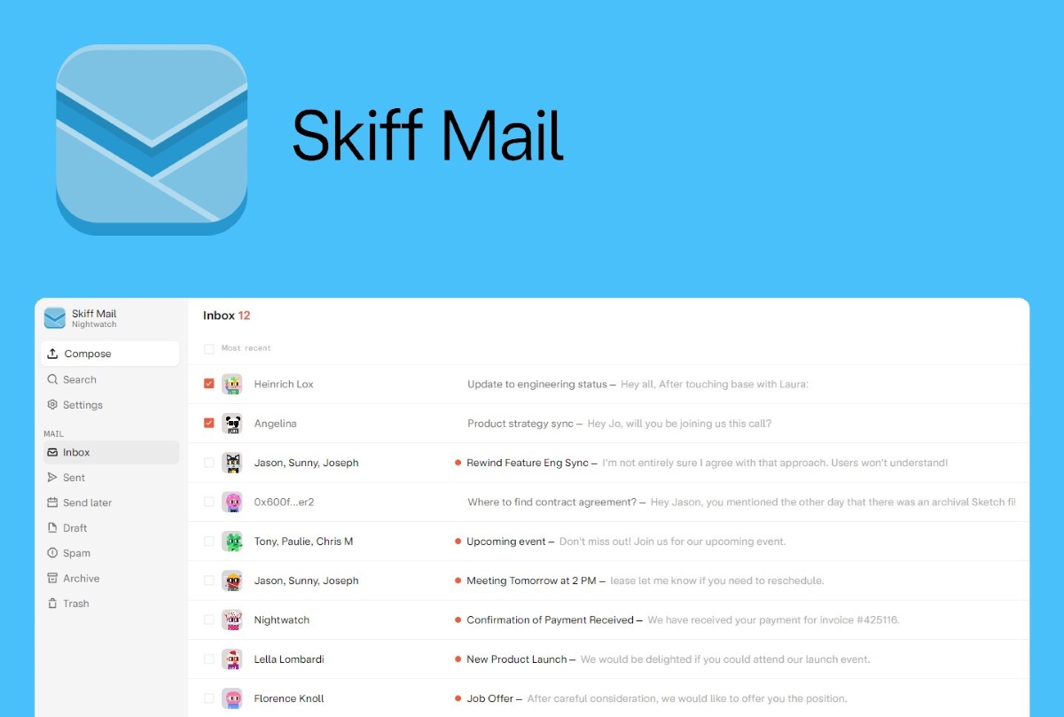 Skiff Mail est une messagerie open source et sécurisée. Ce service, dévoilé en 2022, est venu s’ajouter aux autres outils proposés par Skiff : un éditeur de documents en ligne (Skiff pages), un espace de stockage dans le cloud (Skiff Drive) et un calendrier en ligne (Skiff Calendar). L’intégration de ce service de messagerie a ainsi pour objectif de permettre à la plateforme de concurrencer des suites comme Google Workspace ou Microsoft 365.