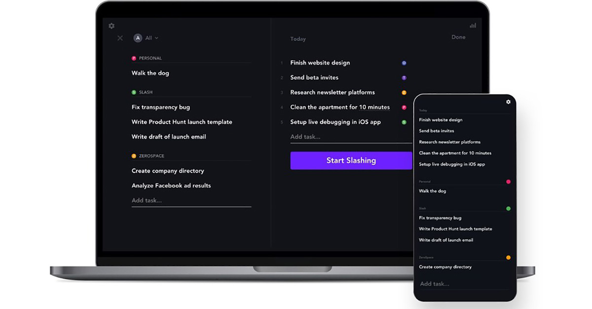 Slash est une application de gestion de projets et de productivité. L’outil permet de créer et suivre une liste de tâches hebdomadaire et quotidienne dans un seul outil en évitant les distractions. Slash est destiné aux entreprises, équipes et freelances qui souhaitent améliorer leur gestion du temps et leur efficacité au travail grâce à une solution simple et minimaliste qui s’intègre à la fois sur leur ordinateur et leur téléphone mobile.