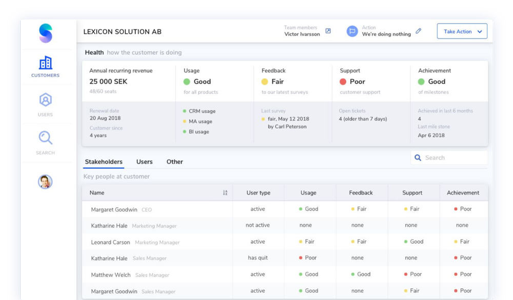 - Score de santé client : Startdeliver calcule un score de santé basé sur l’utilisation du produit par le client.