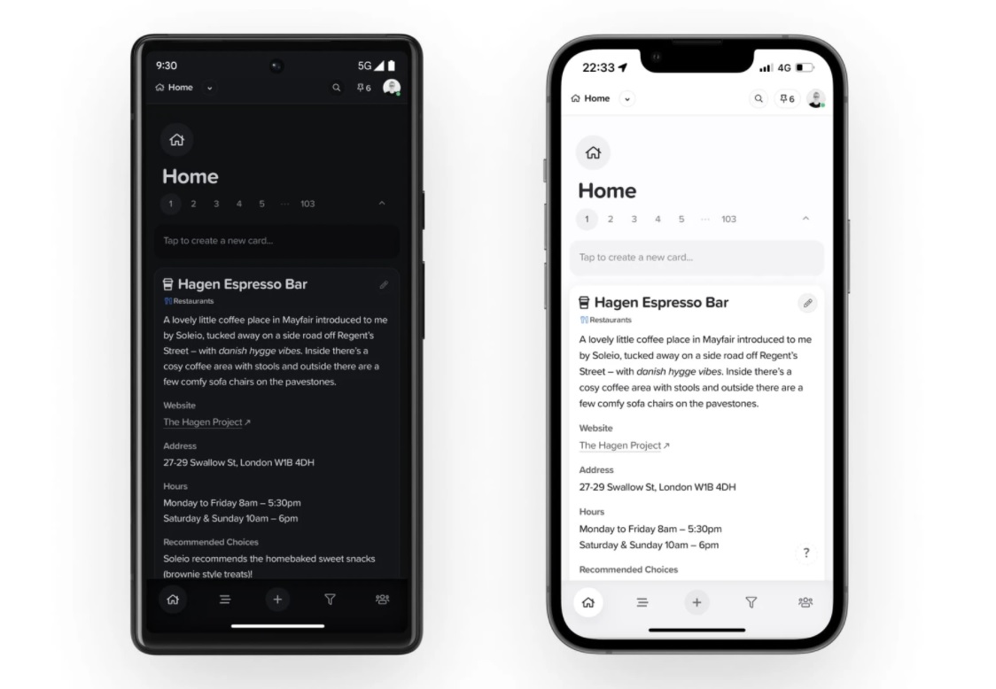 - L’organisation des cartes : connectez les cartes les unes aux autres grâce à l’ajout de liens qui pointent vers d’autres cartes. Supernotes vous offre également la possibilité de les réorganiser en modifiant l’affichage en fonction des priorités. Classez-les dans une ou plusieurs catégories, triez-les rapidement en utilisant des filtres et épinglez-les pour les retrouver directement. Vous pouvez aussi les ajouter dans un calendrier.