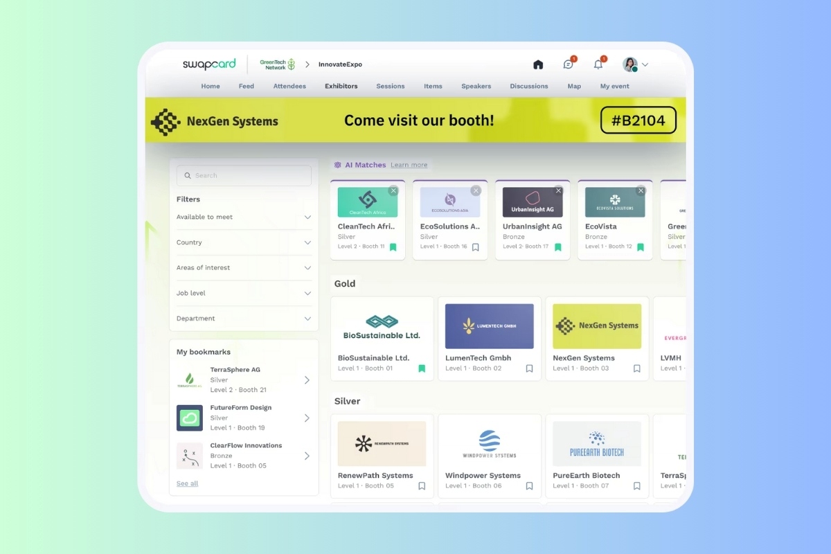 - Gestion des exposants : chaque entreprise dispose d’un espace virtuel pour présenter ses offres et recueillir des informations sur les visiteurs intéressés.
