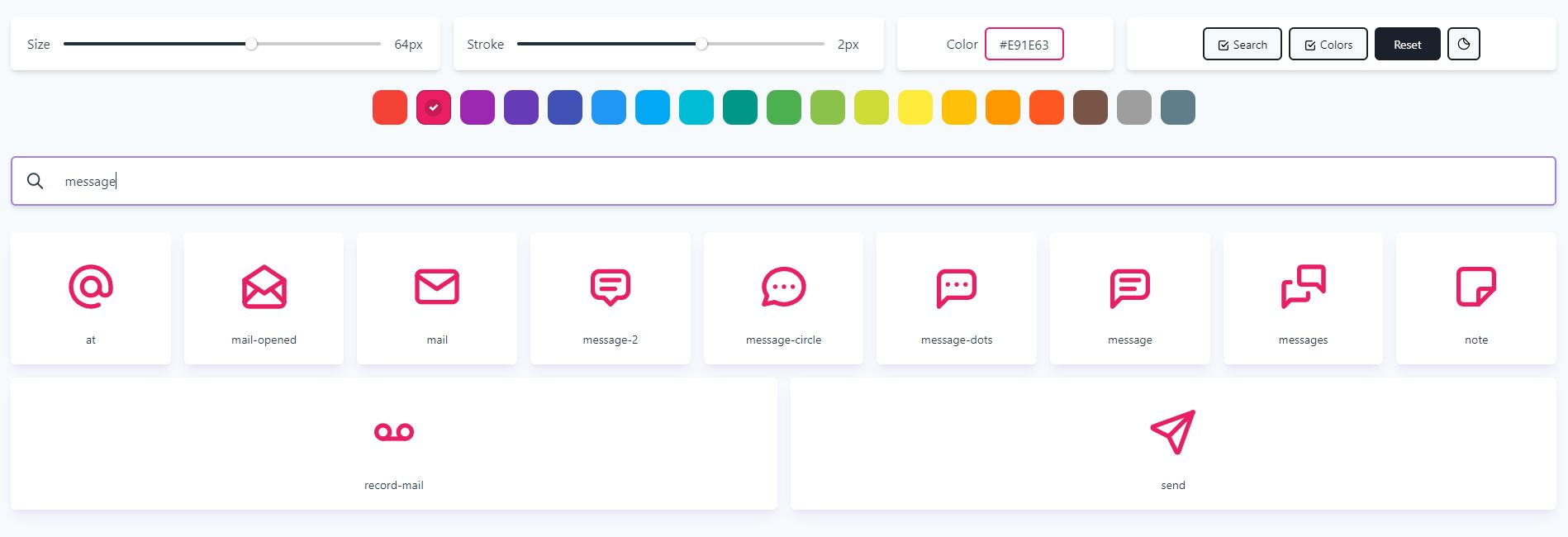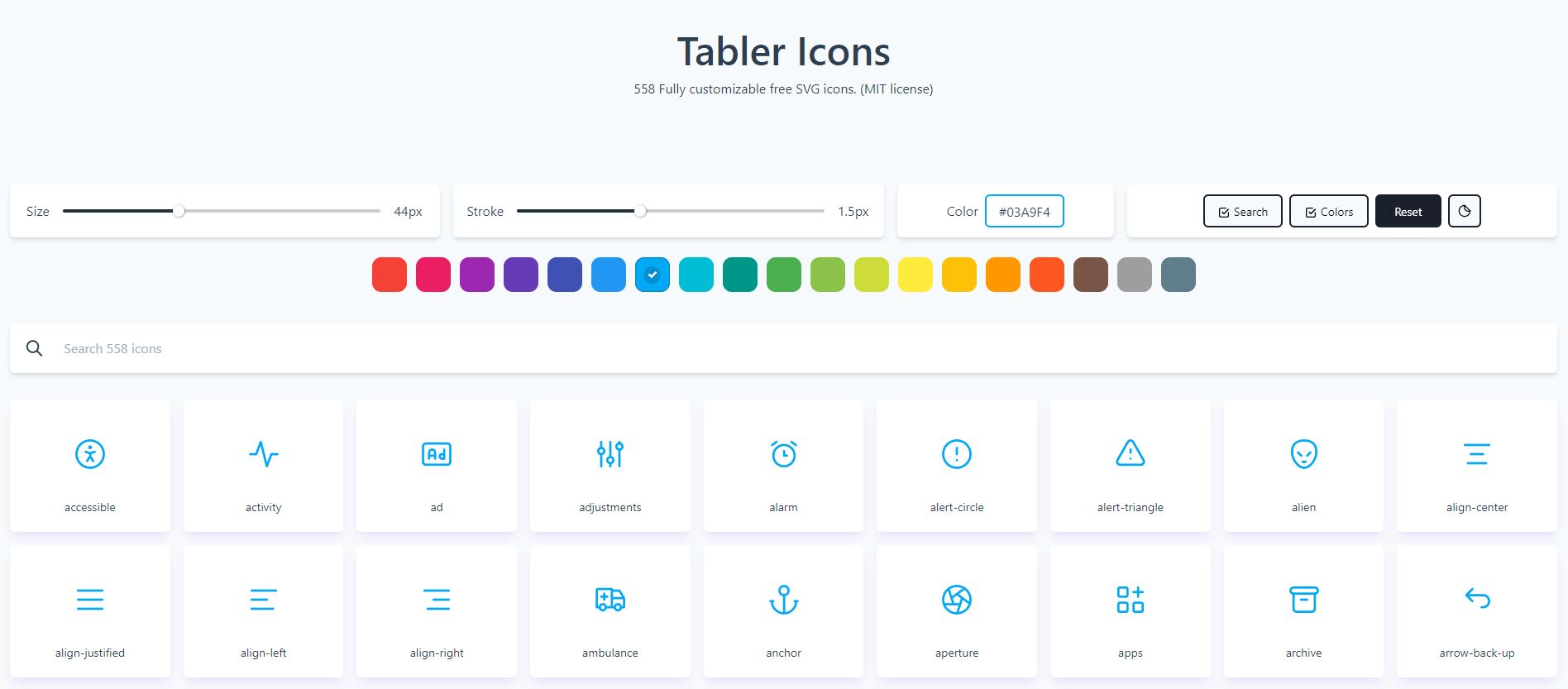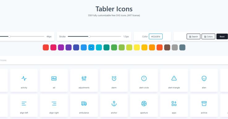 Tabler Icons est un outil gratuit de personnalisation d’icônes SVG. Plus de 550 icônes sont à disposition sur le site. Il est possible de modifier : la taille, l’épaisseur du trait et la couleur de l’icône. Lorsque vous effectuez des modifications, toutes les icônes du site se modifient instantanément.