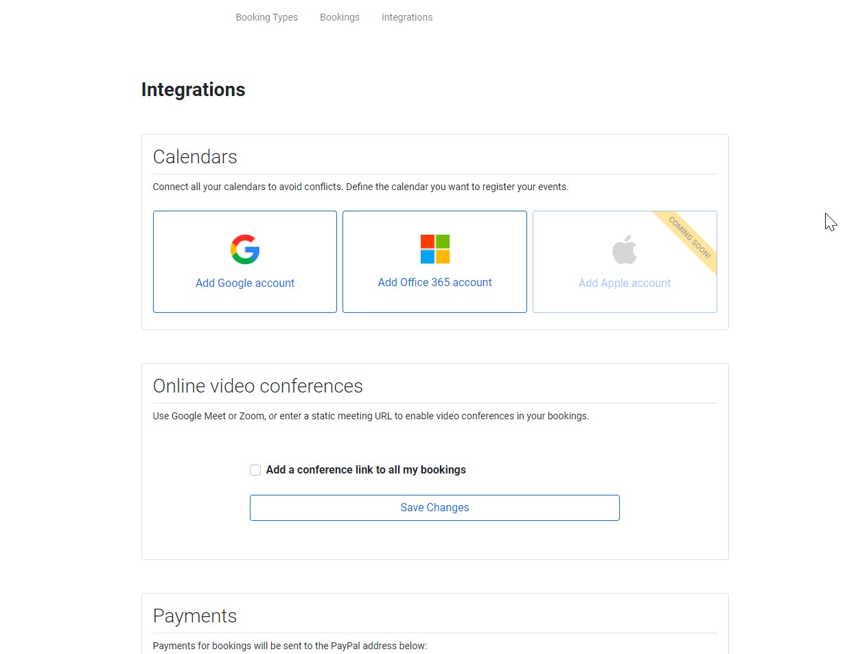 Plusieurs intégrations sont possibles avec TidyCal, notamment avec Google Meet, Zoom, PayPal ou encore Zapier.