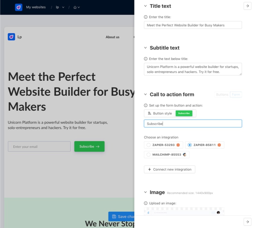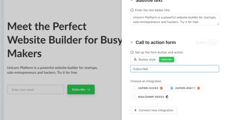 Les principales fonctionnalités de Unicorn Platform sont les suivantes :
