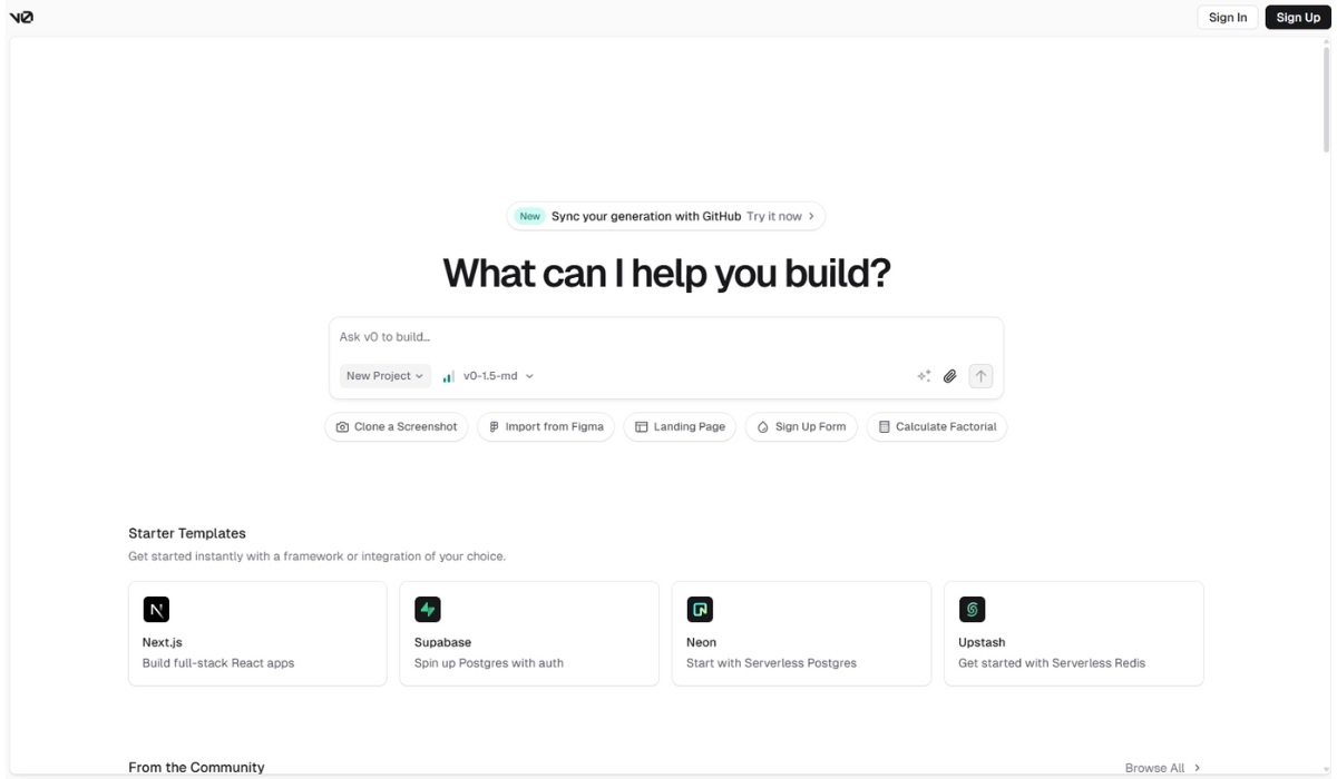 v0 est un outil développé par Vercel qui permet de générer des interfaces web à partir d’instructions textuelles simples. L’utilisateur interagit via une interface de chat et décrit le composant ou la page souhaitée. La plateforme produit alors automatiquement le code correspondant, accompagné d’un aperçu visuel.