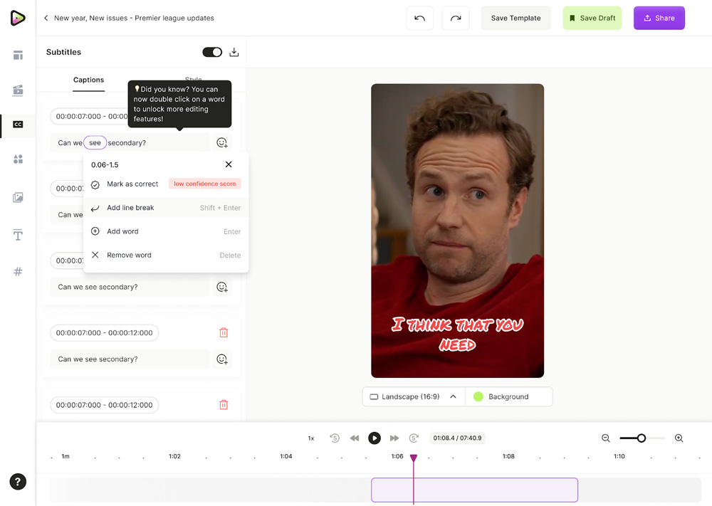 - Sous-titres automatiques : Vidyo.ai sous-titre les vidéos automatiquement grâce à l’intelligence artificielle.
