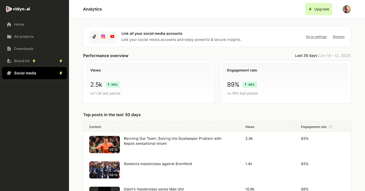 - Détection de viralité : Vidyo.ai détecte le potentiel de viralité d’une vidéo grâce à un score de succès.