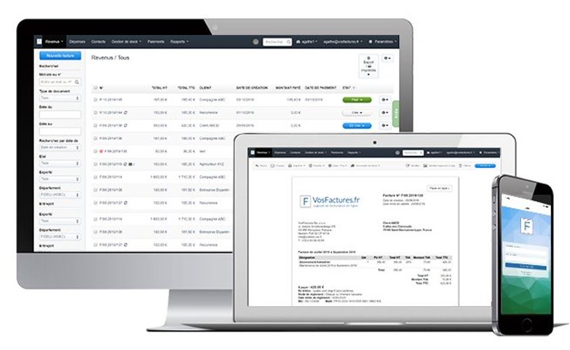 L’outil VosFactures est disponible en version logicielle sur desktop (Windows, Mac et Linux) ou via l’application gratuite (iOS et Android) pour l’utiliser partout, même lorsque vous êtes en déplacement.