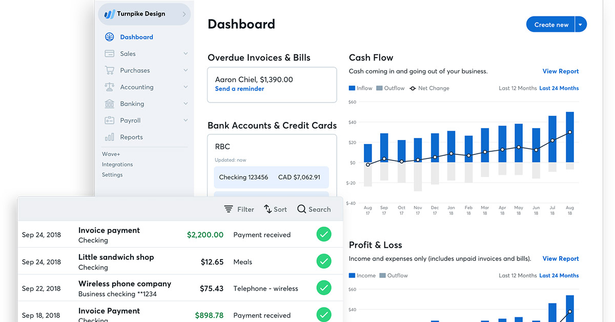Wave est une plateforme de comptabilité qui propose une suite d’outils de gestion financière. Le logiciel permet de suivre les revenus et les dépenses et de garder une trésorerie organisée tout au long de l’année. Wave réunit toutes les fonctionnalités dont une entreprise a besoin pour gérer sa comptabilité seule, ou à l’aide d’experts en ligne.