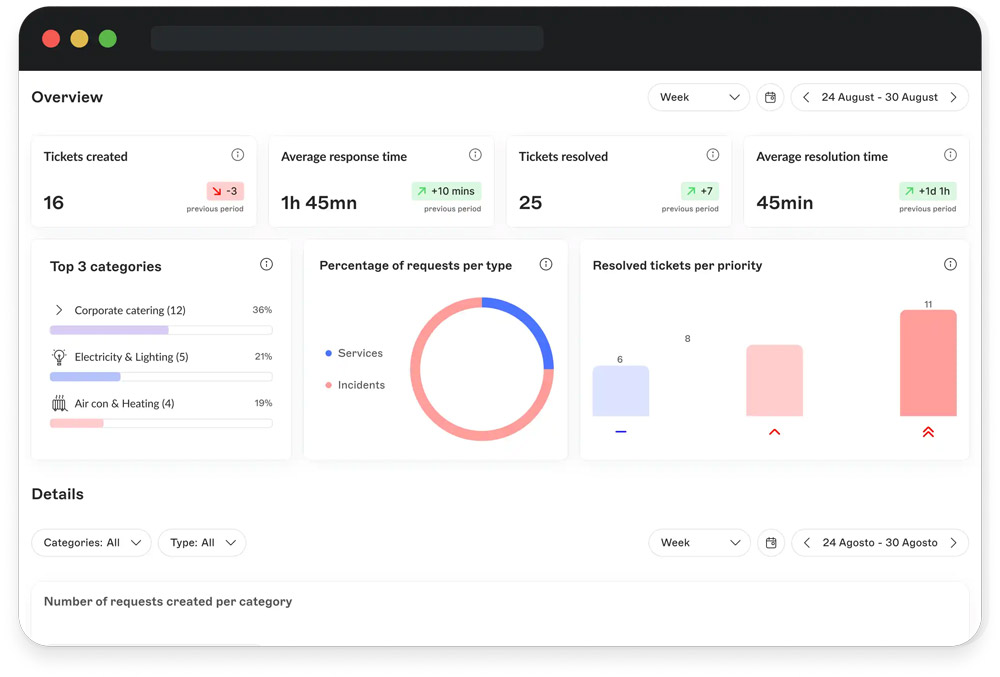- Centralisation des demandes de service : le logiciel permet de gérer vos actifs immobiliers dans le but d’augmenter l’efficacité opérationnelle et la rentabilité.