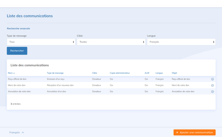 - Newsletter : créez des newsletters pour informer les adhérents de l’actualité de l’association via un modèle de newsletter automatisé. Choisissez simplement le contenu à partager et sélectionnez votre audience, pour envoyer automatiquement la campagne emailing.
