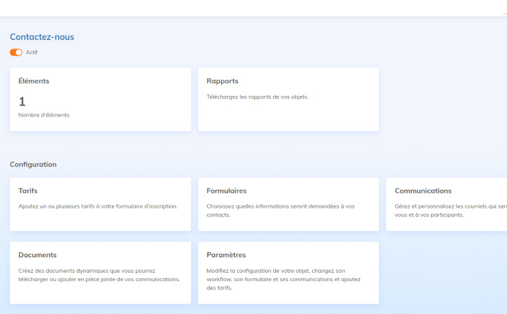 - Site web : l’outil intègre un CMS qui permet de créer un site dédié à l’association en y intégrant différents modules (adhésions, billetterie, page de dons, blog, newsletter…).