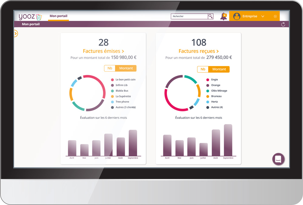 Pour les entreprises, Yooz dématérialise et automatise le processus de traitement des documents achats, fournisseurs, et ventes. Il est possible de collecter automatiquement les factures de vente, de contrôler leur conformité, de créer des demandes d’achat simplifiées ou encore de générer automatiquement des commandes fournisseurs. L’outil utilise également l’IA, le machine learning et la RPA pour enregistrer automatiquement en temps réel des factures. Pour la collaboration et le partage d’informations internes et externes, une messagerie est intégrée.