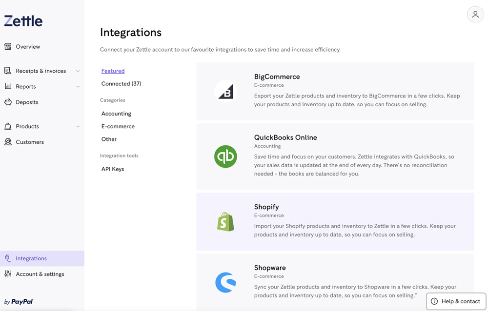 Zettle propose un ensemble de solutions de caisse et de paiement sécurisé, permettant de suivre les ventes, les stocks et l’activité de l’équipe. Le service rend également possible l’intégration d’autres logiciels pour la gestion des tâches comptables ou des statistiques. Le logiciel de caisse est disponible en version web depuis un navigateur et en application mobile (Android et iOS). Depuis 2018, la structure appartient à PayPal.