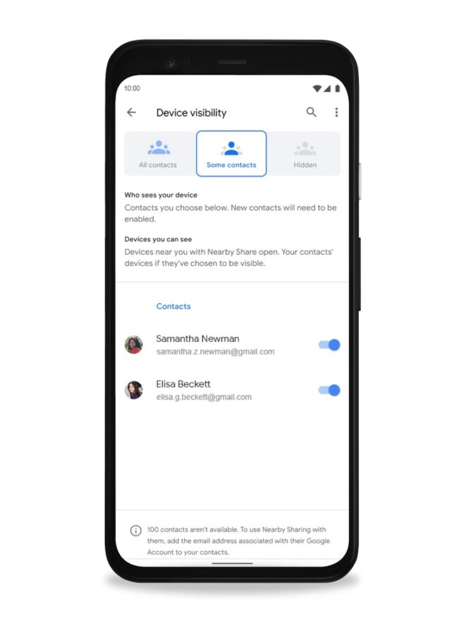 La fonctionnalité de partage de fichiers a été conçue en intégrant le respect des données personnelles des utilisateurs. Vous pouvez configurer les paramètres de visibilité avec les différentes options proposées par Nearby Share :