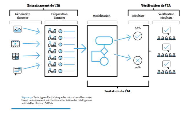 L’enquête démontre notamment que les activités des micro-travailleurs visent à développer les intelligences artificielles. « En réalisant des tâches répétitives, les micro-travailleurs annotent, préparent, enrichissent les bases de données qui sont nécessaires pour la production d’algorithmes, d’enceintes connectées, d’assistants virtuels« , indiquent les chercheurs.