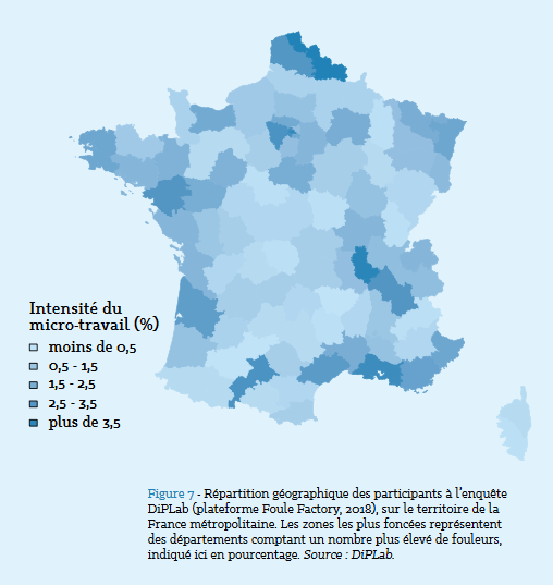 Des chercheurs de Télécom ParisTech, du CNRS, de MSH Paris Saclay et de l’université de Nantes ont réalisé la première étude en France sur les travailleurs du clic, dans le cadre du projet DiPLab. Pour cela, ils ont analysé les activités de 23 plateformes de micro-tâches. Les chercheurs Antonio Casilli, Paola Tubaro, Clément Le Ludec, Marion Coville, Maxime Besenval, Touhfat Mouhtare et Elinor Wahal ont pu déterminer que 260 000 personnes micro-travaillent au moins occasionnellement en France.