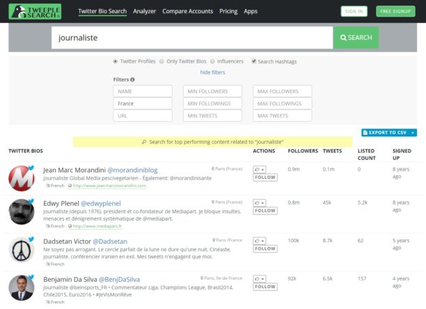 Twitter reste une référence pour l’information en temps réel et il existe une galaxie d’outils pour affiner sa veille, rechercher des influenceurs, de nouvelles sources, et exploiter de manière optimum ce réseau social. On connaissait déjà Followerwonk, pour ne citer que lui. Un excellent outil, racheté par Moz, et dont l’usage gratuit est désormais limité.