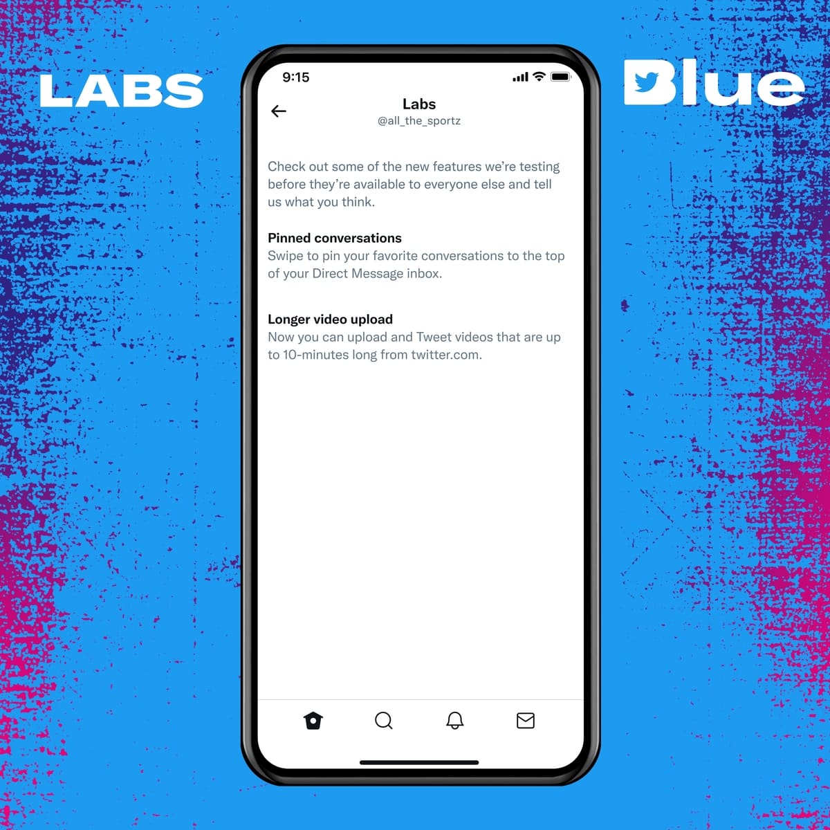 Twitter indique que ces fonctionnalités « changeront souvent ». Parmi les premiers accès anticipés proposés : l’upload de vidéos allant jusqu’à 10 minutes (contre 2 minutes maximum actuellement), et la possibilité d’épingler des conversations dans les messages privés.