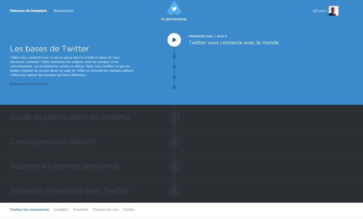 Twitter dispose d’un outil de formation et cours en ligne qui dispense les bonnes pratiques et les insights du réseau social : la TwitterFlightSchool. Jusqu’à présent, cette plateforme était réservée à certaines agences médias et annonceurs préférentiels. Elle est maintenant ouverte à tous ceux qui souhaitent comprendre le réseau social plus en profondeur. Elle s’adresse donc aux professionnels du webmarketing bien sûr, mais aussi aux dirigeants qui souhaitent mettre en place une stratégie d’influence. La plateforme est disponible en 16 langues, dont le Français. Lancé en 2014, ce programme a déjà été utilisé par plus de 15 000 personnes venues de diverses agences.