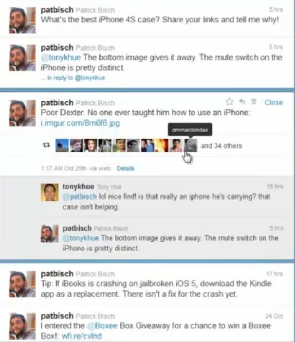 Tout d’abord, il sera possible d’afficher instantanément toute une discussion, quand plusieurs utilisateurs se répondent entre eux. C’est bien pratique lorsqu’une conversation est intéressante, ce qui reste un peu fastidieux à suivre à l’heure actuelle. Autre nouveauté, qui ne surprendra pas les utilisateurs de Twitter qui passent pas certains clients : si un média est lié à un tweet, il sera désormais affiché directement dans la timeline. Apparemment, cela sera le cas pour les vidéos, les photos, et les podcasts. Un clic en moins, c’est toujours ça de pris… Au rayon des fonctionnalités déjà existantes mais plus facilement accessibles avec cette nouvelle version, on trouve aussi l’affichage nombre de retweets suscités par un message. Un peu plus anecdotique ! Vous pourrez aussi rapidement consulter le profil d’un utilisateur de Twitter : en cliquant sur son nom, il s’affichera dans une fenêtre séparée.