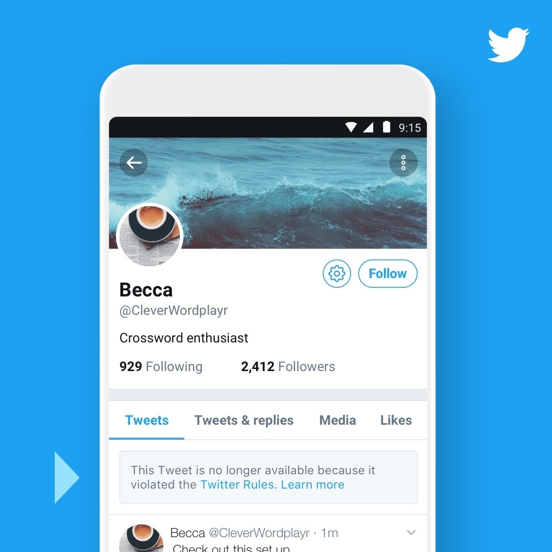 Twitter a publié un communiqué pour annoncer une série de changements sur sa modération. Dans les jours à venir, la plateforme dévoilera un peu plus d’informations concernant les tweets supprimés. Un message sera ainsi affiché en lieu et place du contenu signalé : « Ce tweet n’est plus disponible car il ne respectait pas les règles de Twitter ». L’information sera accompagnée d’un lien vers lesdites règles et vers un article sur le renforcement de la politique de Twitter sur les signalements.