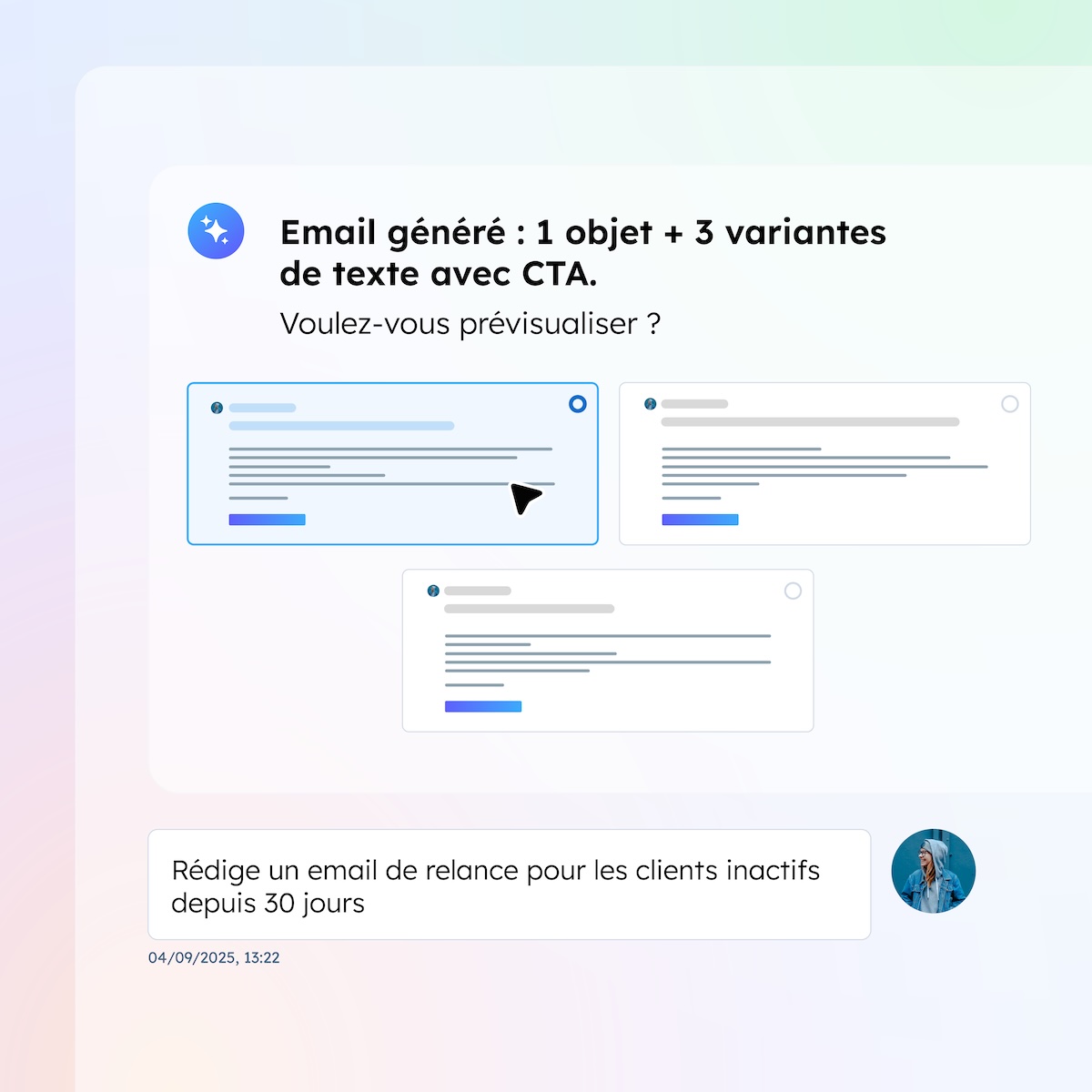 Avec Uma, Positive franchit un nouveau cap. L’outil se présente comme un compagnon IA intégré nativement dans User.com. Cet agent a pour rôle premier de comprendre une intention formulée en langage naturel et de la traduire en une suite d’actions directement exécutables. Une requête simple, comme « Créer un email de relance pour les clients inactifs depuis 30 jours », suffit pour générer un message complet, prêt à l’envoi, sans paramétrage complexe ni configuration technique.
