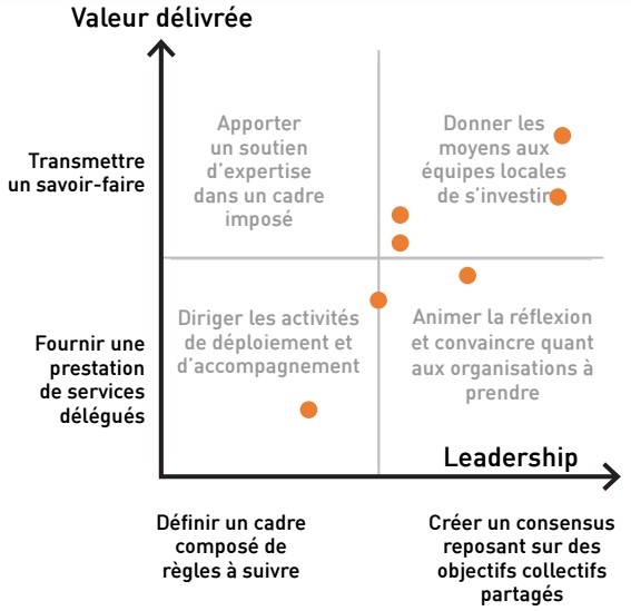L’équipe digitale, quant à elle est le bras armé de la gouvernance. C’est elle qui prépare le terrain pour progressivement imposer les changements. Elle est la première à travailler sur les actions transversales et à partager les services mutualisables avec l’ensemble des entités : acculturer, travailler les sponsors et piloter les actions.