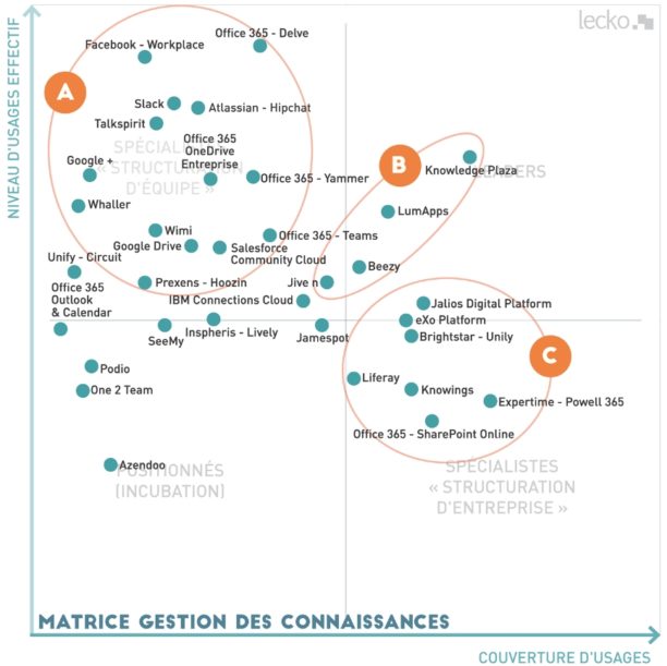« Aujourd’hui, la grande tendance sont les outils collaboratifs qui privilégient une bonne expérience utilisateurs, qui se déploient plus facilement mais qui sont peut-être moins en mesure de structurer l’information. Par exemple, Yammer ou Workplace ou Google qui sont très plébiscités dans les grandes entreprises ».