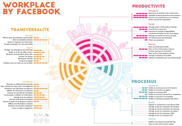 - Workplace by Facebook a fait officiellement son entrée sur le marché fin 2016 et pourrait devenir leader du marché par sa qualité et la pertinence de sa cible.
