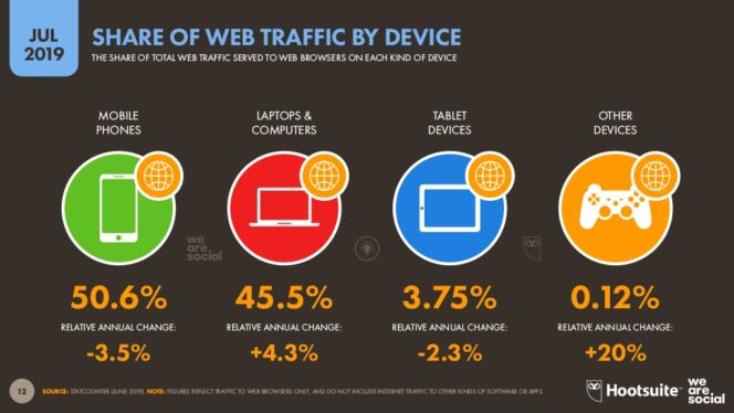 Environ 5,1 milliards de personnes disposent d’un téléphone mobile à travers la planète. Plus de 4,3 milliards de personnes ont accès à Internet : parmi eux, 3,5 milliards utilisent les réseaux sociaux, dont 3,4 milliards sur mobile.