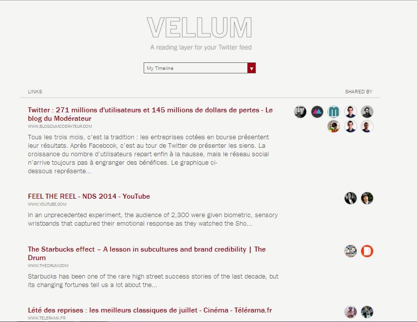 Vellum, un outil Twitter pour voir les liens les plus partagés par ses followers