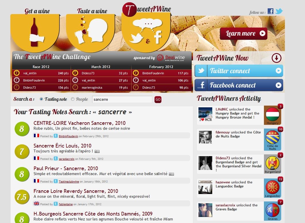 Vous pourrez ainsi donner votre avis sur tous les vins que vous dégusterez, et collecter des badges un peu comme sur Foursquare. Donnez une dimension ludique à un service, c’est une bonne façon de nous rendre addict ! Si vous vous intéressez au vin et cherchez de bonnes bouteilles, TweetAWine est un bon service pour dénicher de nouvelles pépites… Tous les tweets des participants sont en effet agrégés sur la page d’accueil, et vous pourrez facilement retrouver les appréciations des vins de votre choix.