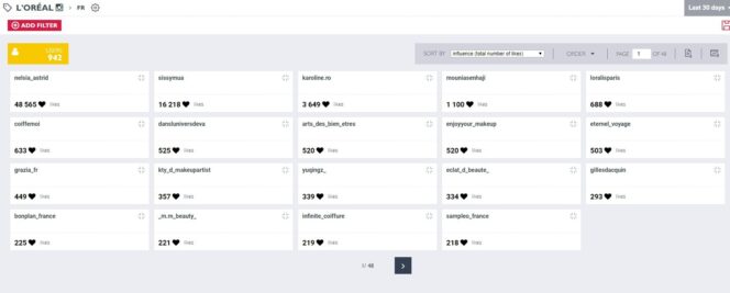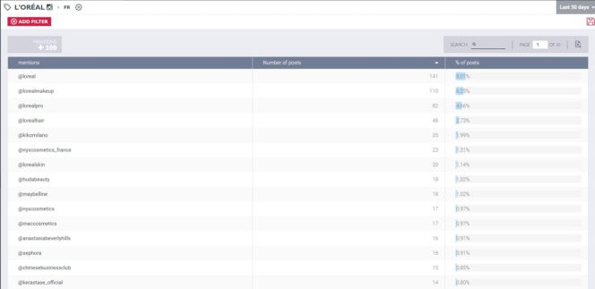 L’outil permet aussi de faire une veille sur les profils postant sur les sujets sur lesquels vous faites une veille. Dans le cas de L’Oréal, il est ainsi possible de trouver (et contacter dans un second temps) tous les profils parlant de la marque, en bien ou en mal.