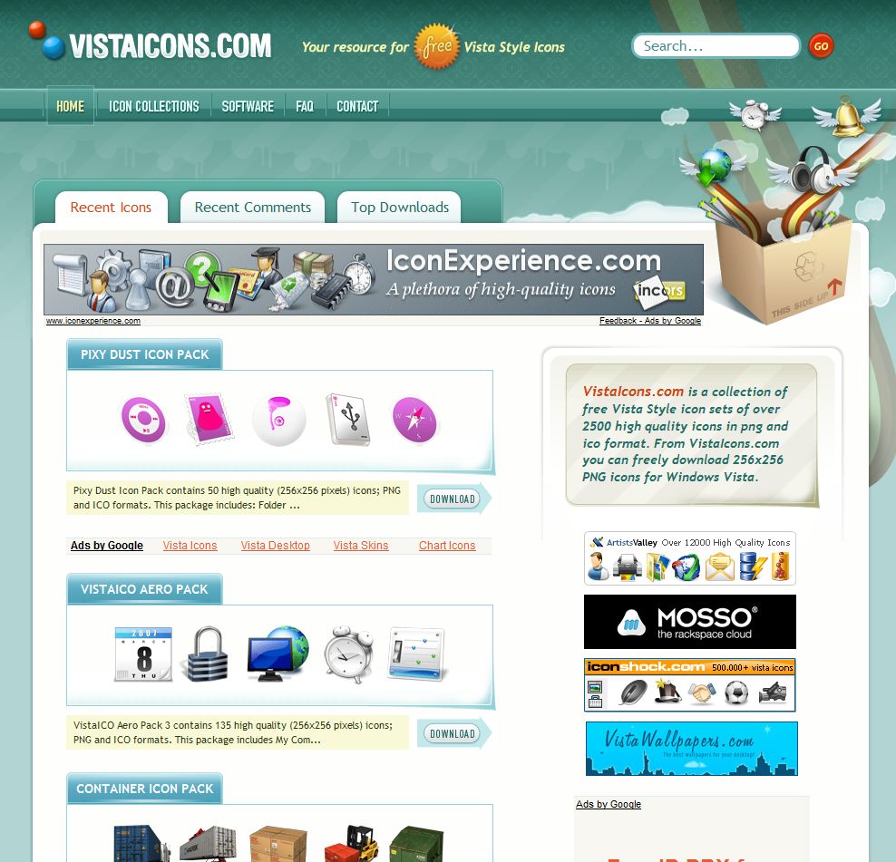 Vistaicons s’est spécialisé dans les icônes de style Vista. Au total, vous en trouverez plus de 2 500 en haute qualité. Il y en a pour tous les goûts, du RSS à Noël en passant par des sacs et des navigateurs… A découvrir !