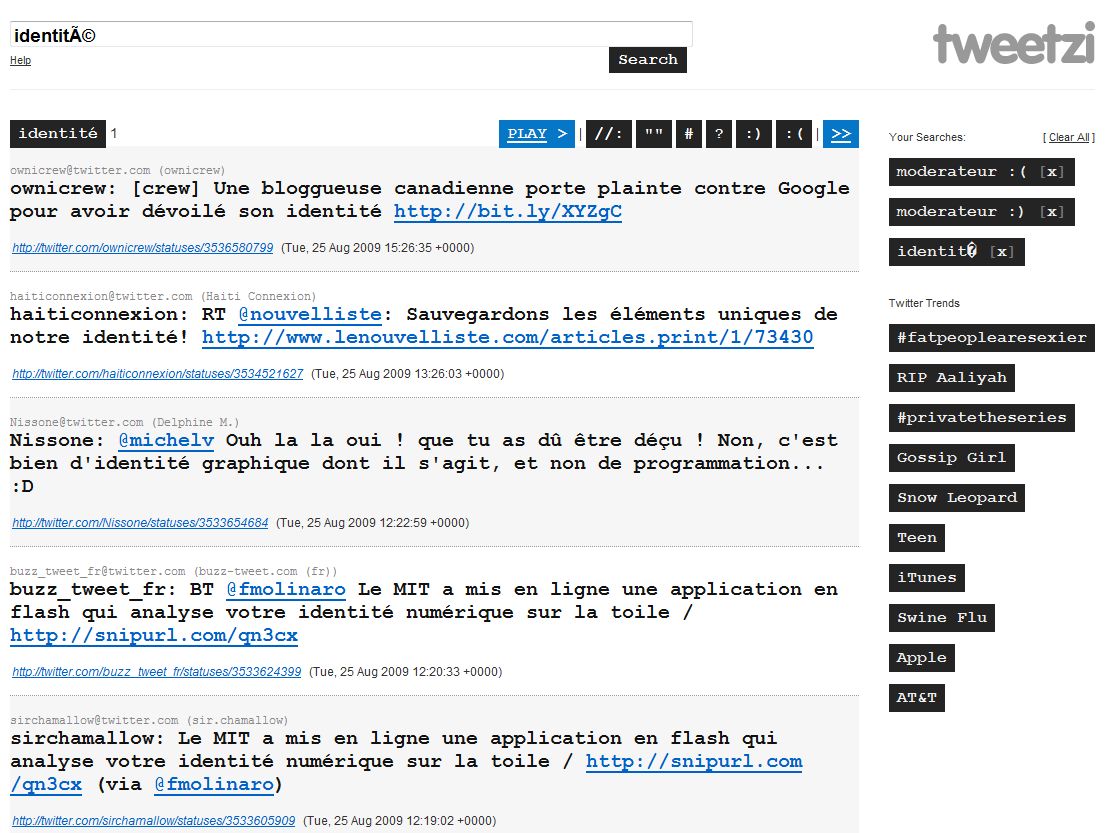 Un moteur de recherche en temps réel pour Twitter. Encore ? Oui, mais celui-ci propose de filtrer les résultats de différentes manières : twitts positifs, négatifs, citations, … Plutôt bien fait.