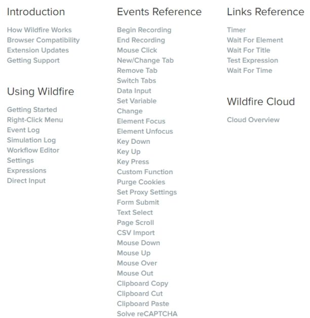 L’outil nécessite tout de même quelques minutes de prise en main, mais les possibilités sont infinies. Wildfire s’adapte vraiment à vos habitudes et à vos tâches récurrentes. Vous trouverez quelques exemples de workflows conçus pour les professionnels, mais pas que. Vous pouvez créer un CSV contenant vos sites préférés pour automatiser votre veille le matin : Wildfire peut vous permettre d’ouvrir automatiquement votre premier site préféré, scroller à votre convenance, fermer l’onglet, passer au suivant, et ainsi de suite. Les mauvaises langues diront que c’est un outil pour les fainéants, d’autres verront qu’il permet de gagner en productivité en se concentrant sur des tâches plus intéressantes. Une documentation est incluse et vous permet d’imaginer toutes les possibilités qu’offre Wildfire.