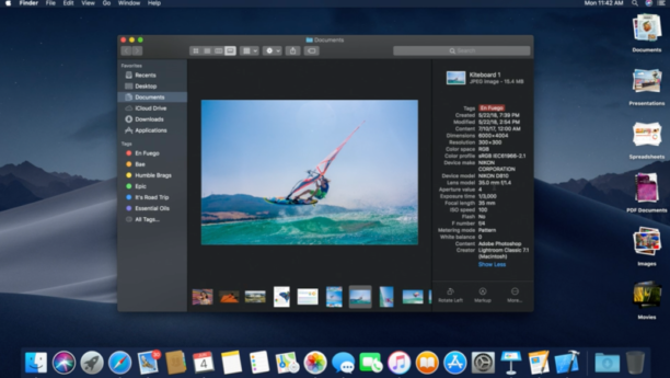 Apple va proposer une « Gallery View » dans le finder permettant de faire défiler les photos plus simplement en ayant accès à leurs metadatas. On pourra aussi éditer les photos directement depuis le finder. Une mise à jour qui sera sûrement très utile pour des modifications basiques.